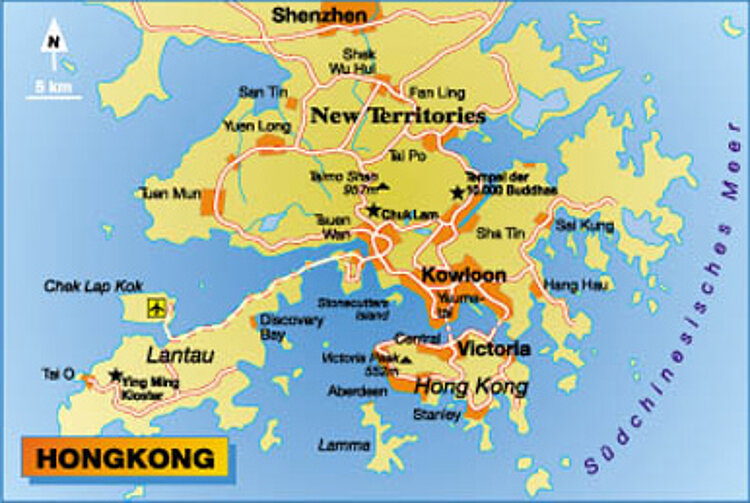 Das Flugzeug verliert kontinuierlich an Höhe und durchbricht die Wolkendecke. Was man nun sieht, ist Wasser, viel Wasser. In dem Blau des Südchinesischen Meeres erkennt der Reisende vereinzelte Farbtupfer. Es sind Dschunken und Fischerboote, Containerschiffe und Öltanker, die alle ein gemeinsames Ziel haben: den „Duftenden Hafen“ von Hongkong. Nun sieht man immer mehr Inseln, von denen die meisten unbewohnt sind. Die größte heißt Lantau Island und gehört zum Territorium der chinesischen Sonderverwaltungszone Hongkong.Der Langstreckenjet landet auf dem gigantischen neuen Flughafen Chek Lap Kok, bis vor kurzem noch die größte Baustelle der Welt. Dieser löst im Juli 1998 endgültig den alten Flughafen Kai Tak ab.Der Besucher ist angekommen im Zentrum Asiens, in der Welthauptstadt des 21. Jahrhunderts, deren Kraft ungezügelt ist und immer wieder neue Weltwunder hervorbringt. Eines dieser Wunder ist der neue Hongkonger Flughafen, der mehr als 20 Milliarden US$ kostete und durch eine riesige Brückenkonstruktion mit der City verbunden ist. Die 1370 Meter lange Tsing Ma-Bridge wurde am 27. April 1997 von Margaret Thatcher eingeweiht. Sie ist Teil einer neuen Autobahn und einer Zugstrecke, über der ab Juli 1998 die Hightech-Bahnen im Minutentakt zwischen Chek Lap Kok und der Innenstadt verkehren.
