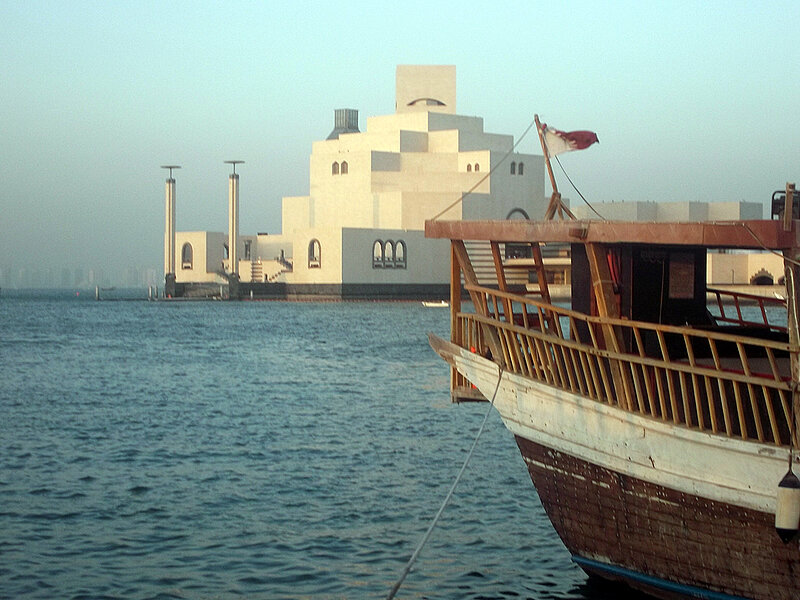 In Doha gehen wir auf Museumstour. Nirgendwo sonst in Nahost finden sich so bedeutende Kunsthallen auf engstem Raum. Der amerikanische Bauhausschüler I. M. Pei (Glaspavillon des Pariser Louvre, Neues Preußisches Museum Berlin) krönte noch als 91-jähriger sein Lebenswerk mit dem „Museum für Islamische Kunst“ (MIA). 2008 eröffnet, bewahrt es die einzige Sammlung im arabischen Raum. Die Schatzkammer des Orients aus Silber, Gold und Edelsteinen, Keramiken, Waffen und Dokumenten aus 14 Jahrhunderten füllt die Hallen des lichtdurchfluteten Kuppelbaus. Auf fünf Flure verteilen sich die Exponate aus der Türkei, Zentralasien, Iran, Ägypten, Syrien und Indien, viele davon aus dem Privatbesitz des Emirs. Im „Idam-Restaurant“ im 3.Stock wird französische Küche vom Feinsten serviert.