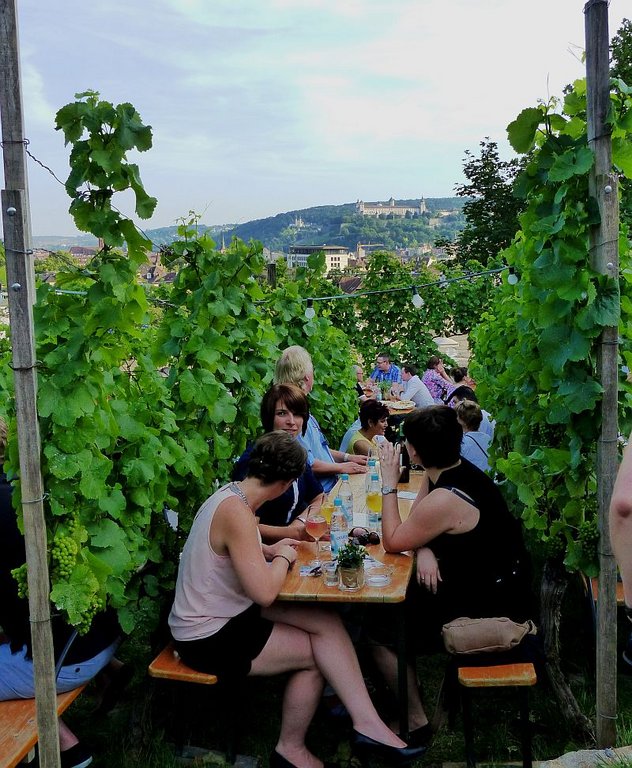 Weintechnisch hat das Gemeinwesen, an dem einst Schweine durch eine Furt vom Land in die Stadt zum Metzger getrieben wurden, eine neue Qualitätsoffensive gestartet, was Winzer und Weindozent Albert Kestler seinen Gästen auch mit einem frischen Probeschluck beweist. Auch im Weingut Petersstirn startet Wein-Prinzessin Lena (18) charmant lächelnd den Versuch zu beweisen, dass die sechstgrößte deutsche Weinregion mit ihren typischen Bocksbeutel-Flaschen ein bevorzugter Genussplatz von Dionysos und Bacchus, den legendären Weingöttern der Antike, gewesen sein dürfte. Im Weinlexikon heißt es lapidar: „Der Frankenwein ist herzhaft erdig, sehr körperreich und meist trocken ausgebaut – mit keinem anderen Wein vergleichbar“.