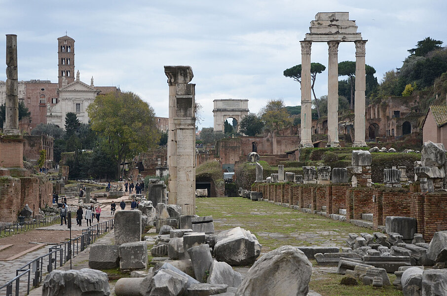 Vom Kapitolshügel bietet sich der schönste Blick auf die Foren. Man braucht etwas Fantasie, um aus den malerischen Trümmern die Bedeutung herauszulesen, die sie in der Antike hatten. Von hier aus wurde nicht nur die Großstadt Rom regiert, sondern das ganze Imperium. Unweit des weltberühmten Forum Romanum mit seinen Triumphbögen, Tempelresten und heiligen Gesteinen liegen das Trajansforum mit der schönen Trajanssäule, das Caesar- und das Augustusforum.