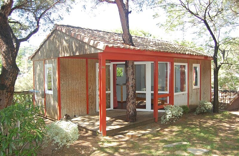 Die Bungalows, allesamt aus Holz, liegen mitten im bewaldeten Gelände des Campingplatzes, sodass es im Sommer schattig und angenehm kühl ist. Jeder Bungalow hat seinen eigenen kleinen Gartenbereich. Ausblick und Gestaltung variieren bei jeder Wohneinheit, sodass jedes Häuschen ein Unikat ist.