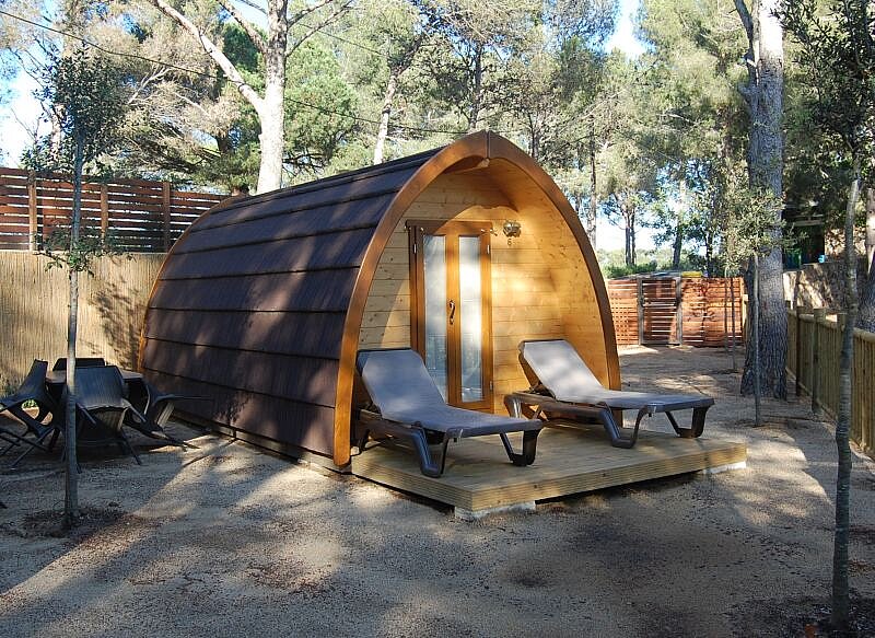 Klein, aber urig und gemütlich sind die neuen halbrunden Holzbungalows des Campingplatzes. Auf engstem Raum findet man hier alles was man zum Leben braucht: vier Schlafmöglichkeiten sowie eine Kochecke und ein Badezimmer. Mitten im Wald befinden sich die älteren, aber dafür etwas geräumigeren Holzbungalows. Um dem neuen Glamping-Trend gerecht zu werden, sind aber bereits neue Häuser auf einem weiteren Areal geplant.