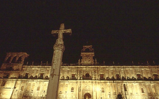 Gegenüber ragt die Clerecía auf, eine Barockkirche mit Kreuzgang aus dem 17. Jahrhundert.