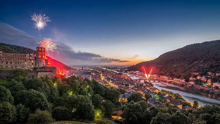 Besonders stimmungsvoll lässt sich das Feuerwerk von den Neckarwiesen aus genießen, wo zahlreiche Gäste darauf warten, dass sich der Himmel über Heidelberg in ein Lichtermeer aus bunten Farben verwandelt und die Alte Brücke in den Farben des Feuerwerks erstrahlt. Hautnah am Geschehen ist man ebenso auf einem Schiff der Weißen Flotte. Darüber hinaus bietet am nördlichen Flussufer der Philosophenweg eine hervorragende Aussicht auf das Spektakel.