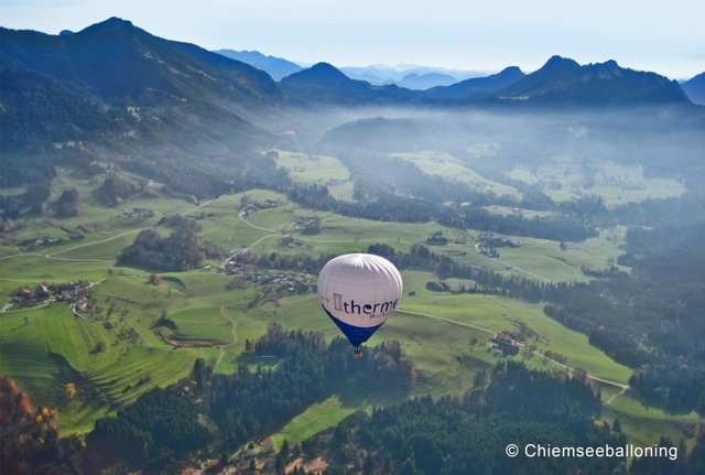 Weit mehr als heiße Luft erwartet Ballonfahrer in der Region Chiemsee-Alpenland. Die Fahrt führt vorbei am Chiemsee, an Bergen und der Eggstätt-Hemhofer-Seenplatte mit 18 Einzelseen, hinweg über typisch oberbayerische Landschaften und Orte. Von hier oben reicht die Sicht uneingeschränkt bis nach Österreich. Ballonfahrer heben zum Beispiel mit „Chiemseeballoning“ ab – zur Flotte gehört auch der weiß-blaue Thermenballon Bad Aibling.