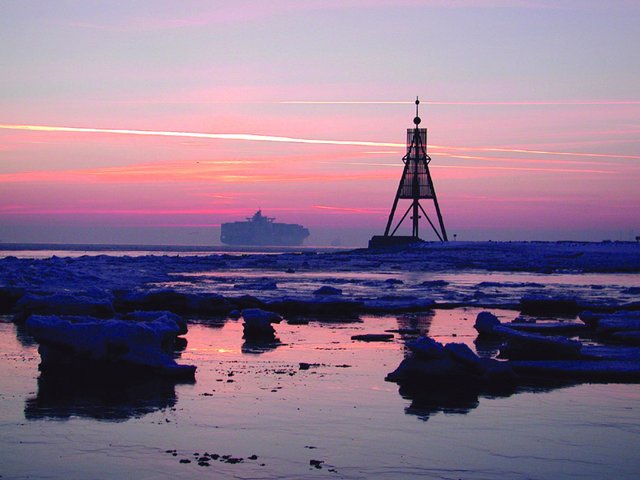 Eisig schön: die Kugelbake im winterlichen Cuxhaven (Foto: Kamp Hotels/woebber.de)