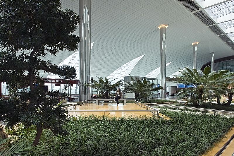 Wie auch alle Einrichtungen am Flughafen Dubai International sind auch die Serviceangebote enorm. Jeder Terminal wirkt wie eine eigene kleine und hochmoderne Stadt. Unter Palmen in Pflanztöpfen und mit Blick auf den Burj Khalifa gibt es Banken, Massage- und Fitnesszentren, Reiseveranstalter, Autovermietungen, freies Wi-Fi sowie Internetcafés, ein Hotel und zahlreiche Geschäfte, Restaurants und Imbisse. Für jeden Geschmack sollte sich etwas Passendes finden lassen.