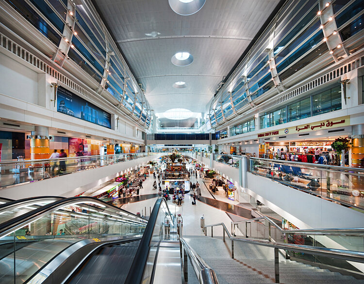 Nach der Landung in Dubai kann es passieren, dass das nächste Transportmittel bereits im Flughafen benutzt werden muss: Shuttle-Busse verbinden 24 Stunden am Tag die drei Flughafen-Terminals miteinander.