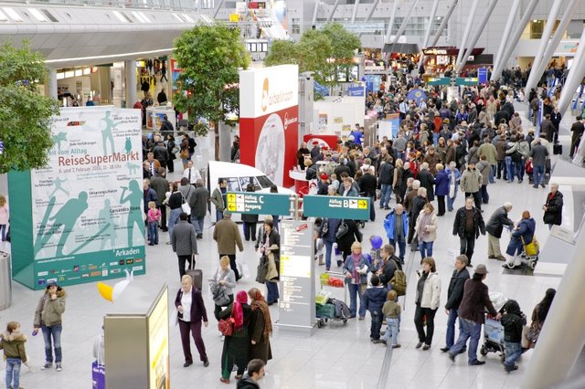 Im Düsseldorfer Flughafen sind insgesamt über 60 Reisebüros mit über 200 Kundenberatern niedergelassen. Von hier aus können Reisen zu allen Reisezielen der Welt gebucht werden.