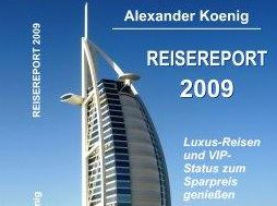 Ein neuer Ratgeber hilft, sich im Dschungel der Kundenbindungsprogramme zurechtzufinden. Und hilft so alle Vorteile auch nutzen zu können. Alexander Koenig, promovierter Diplom-Kaufmann und reiselustiger Unternehmensberater, hat in seinem Buch <link http: www.first-class-and-more.de _blank external-link-new-window external link in new>"Reisereport 2009" alle notwendigen Informationen fleißig zusammengetragen. So hilft er anderen Reisenden, Luxus bei der Lufthansa, bei Mietwagen-Firmen und in diversen Hotels zu Sonderpreisen zu genießen.