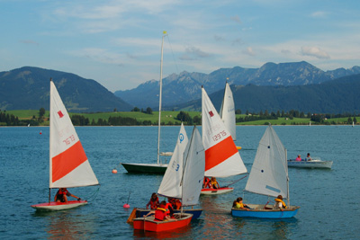 Während die Eltern in der abwechslungsreichen Landschaft des Allgäu erholsame Stunden verbringen, kann der Nachwuchs in ganztägigen Kinderkursen der Forggensee-Yachtschule das Segeln lernen. Mit vielen Gleichaltrigen werden in familiärer Atmosphäre die wichtigsten Handgriffe geübt und das Segel-ABC erlernt. In Optimisten, den kleinen Segelbooten, geht es raus aufs Wasser. Und oft genug auch mal ins Wasser, denn der Spaß kommt auf keinen Fall zu kurz.