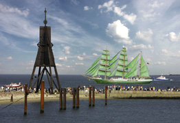 Im Meer baden und dabei die dicken Pötte am Horizont vorbei fahren sehen: Cuxhavens Lage am Weltschifffahrtsweg macht´s möglich. Aufgereiht wie an einer Perlenschnur ziehen sie dahin und verleihen der Stadt an der Elbmündung ihre unverwechselbare maritime Kulisse. Und wo sonst findet man in unmittelbarer Strandnähe einen belebten Hafen, Flaniermeilen mit Cafés, Museen und Einkaufsmöglichkeiten.