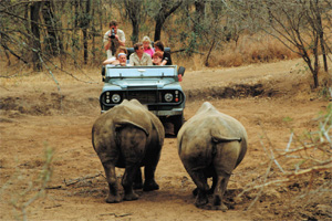 Zwei Pirschfahrten bietet der Reiseveranstalter ZeitRäume im Programm seiner „Erlebnisreise Südafrika“. Eine davon führt in offenen Fahrzeugen durch das Wildreservat Hluhluwe. Es ist Südafrikas ältester Nationalpark, im zentralen Zululand gelegen. Die vielfältige Vegetation des Parks bietet einer reichen Tierwelt Lebensraum. Neben den „Big Five“ können mit ein bisschen Glück auch Giraffen oder Geparde gesichtet werden.