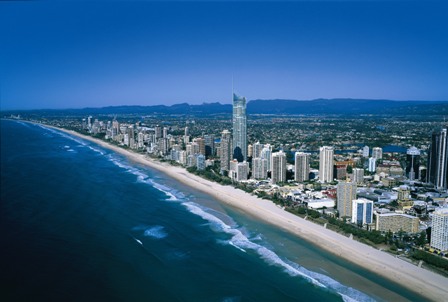 Die Gold Coast südlich von Brisbane ist das beliebteste Ferienziel an der australischen Ostküste. Lebendige Orte liegen an kilometerlangen Surf- und Badestränden. Das Hinterland wartet mit zahlreichen Nationalparks auf. Die ausgedehnten subtropischen Regenwälder des Lamington Nationalpark und des Springbrook Nationalpark gehören zum Weltnaturerbe. Airtrain bietet Zugverbindungen zwischen dem internationalen Flughafen von Brisbane und verschiedenen Orten der Gold Coast.