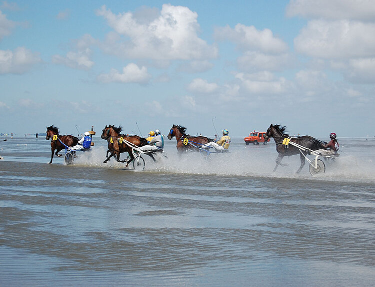 Am 15. Juli 2012 ist es wieder so weit: Dann findet im Nordseeheilbad Cuxhaven als Höhepunkt der Urlaubssaison das Duhner Wattrennen statt. Zum weltweit einzigen Pferderennen im Wattenmeer zieht es jedes Jahr tausende Zuschauer in die Stadt am Weltschifffahrtsweg. Und auch die Urlaubsgäste schätzen das kuriose Turfspektakel zwischen Ebbe und Flut, das sich entspannt vom Seedeich aus verfolgen lässt. Bei den insgesamt zwölf Rennen auf dem rund 1,2 Kilometer langen Rundkurs im trocken gefallenen Watt haben die Zuschauer auch Gelegenheit, aufs richtige Pferd zu setzen und zu gewinnen. Dafür stehen die mobilen Totalisatoren am Duhner Strand bereit.