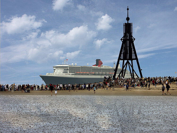 Mehrmals im Jahr fährt sie an Cuxhaven vorbei: die Queen Mary 2, eines der größten Kreuzfahrtschiffe der Welt. Dann stehen Tausende Zuschauer an der Aussichtsplattform „Alte Liebe“, an der Kugelbake oder an den Stränden der Grimmershörnbucht, um zu beobachten, wie der Ozeanriese die Hafenstadt passiert.