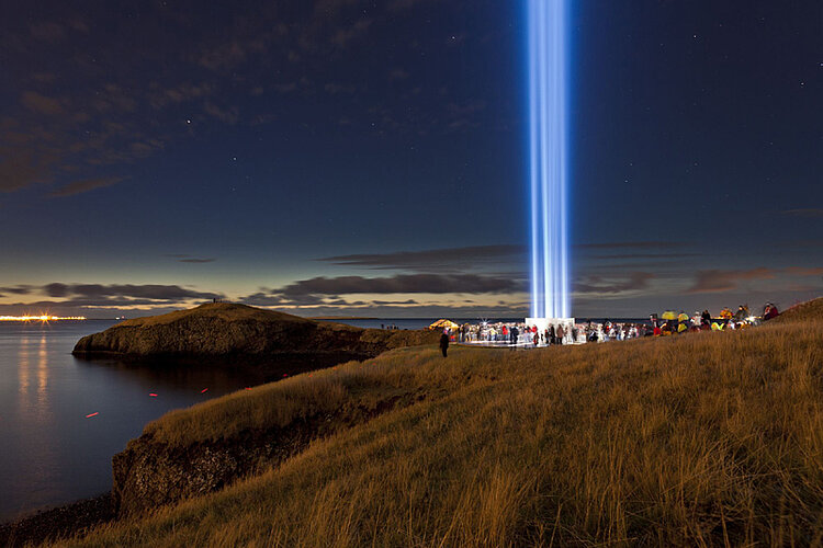 Die Lichtsäule zu Ehren John Lennons wird jedes Jahr am 9. Oktober von Yoko Ono eingeschaltet (Foto: visiticeland.com)