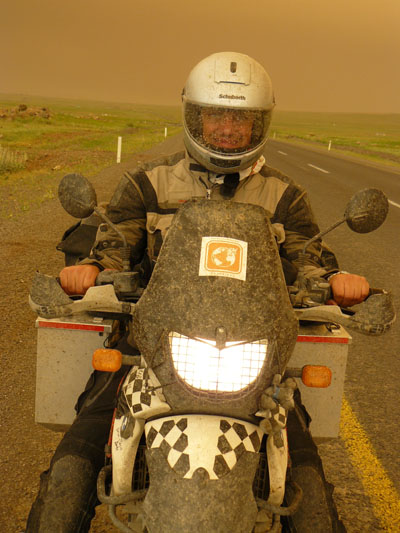 Schon bei der Abfahrt sieht der Himmel verhangen aus. Trotzdem entscheiden wir uns für den Aufbruch. Denn wir wollen nicht zu spät in Syrien angekommen. Es ist ein bisschen wie das Spiel mit dem Feuer. Verlässt du die Stadt, sollte es nach Möglichkeit für die nächsten fünfzig Kilometer bis zum nächsten Ort, der Schutz bietet, nicht regnen. Ansonsten wird man bis auf die Knochen durchnässt. Das Anlegen von Regenkleidung wollen wir vermeiden, weil es sehr lang dauert. Außerdem macht es mich unbeweglich und daher auch mürrisch. Mit dieser Ausgangslage pesen wir über die Landstraße, der Himmel über uns ist tief dunkelbraun. Es muss sich um Sand aus der syrischen Wüste handeln. Unsere Visiere setzen sich mit einer Sandschicht zu. Wir säubern sie mit dem Erfolg, dass fünf Minuten später alles wieder genauso verschmutzt war wie zuvor. Nur der Regen bleibt noch aus. Ich finde dieses Naturphänomen so spannend, dass ich mehrmals anhalte, um spektakuläre Bilder zu machen. Hinter uns droht braun das Sandregengewitter, vor uns am Horizont leuchtet ein weißer, heller Himmel. Viel Zeit bleibt mir jedoch nicht, denn mein Motorrad und ich sind jetzt schon recht schmutzig. Wenn es richtig losgehen sollte, gibt es keine Rettung mehr für Kleidung und Maschine. Also: volles Tempo voraus!
